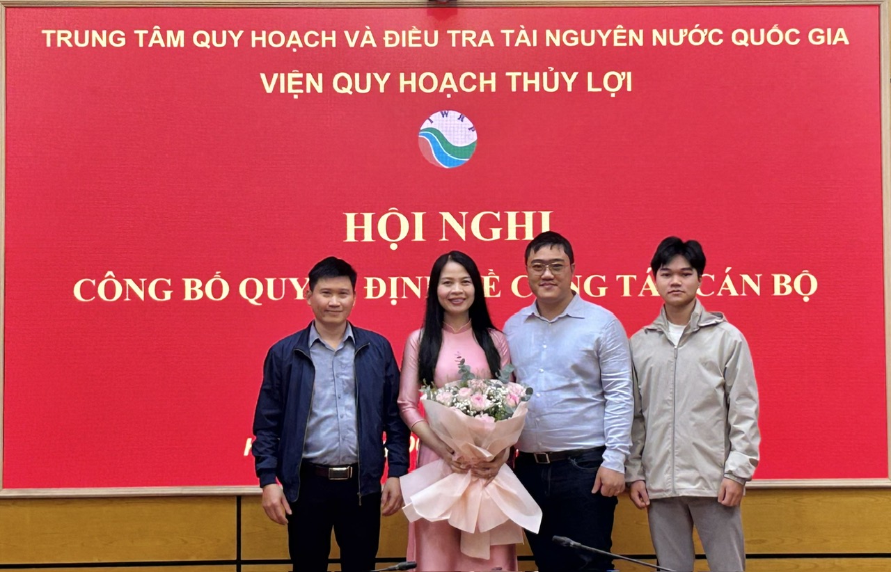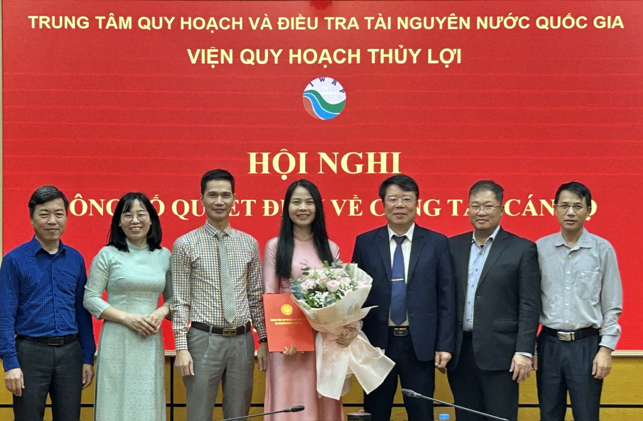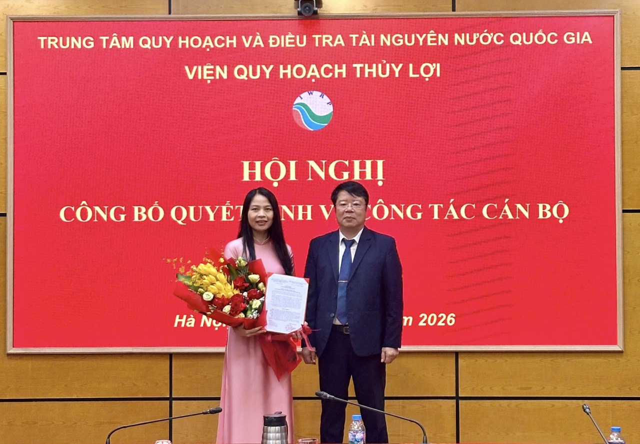 Ngày 06/3/2026, Viện Quy hoạch Thủy lợi đã phối hợp với Văn phòng Trung tâm Quy hoạch và Điều tra Tài nguyên nước Quốc gia tổ chức Hội nghị công bố Quyết định của Tổng Giám đốc về việc bổ nhiệm bà Lê Thị Mai Vân giữ chức vụ Phó Viện trưởng Viện Quy hoạch Thủy lợi.