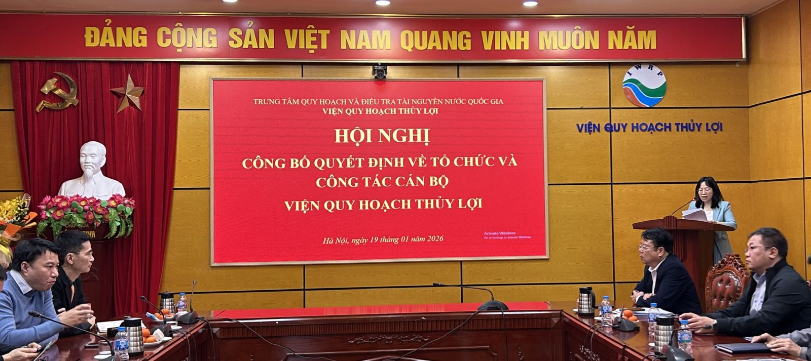 Ngày 19/1/2026, Viện Quy hoạch Thủy lợi đã tổ chức Hội nghị công bố các Quyết định về tổ chức và công tác cán bộ Viện Quy hoạch Thủy lợi. Đến dự Hội nghị có Ông La Đức Dũng – Tổng Giám đốc Trung tâm Quy hoạch và Điều tra Tài nguyên nước Quốc gia, ông Đào Ngọc Tuấn – Phó Tổng Giám đốc Trung tâm Quy hoạch và Điều tra Tài nguyên nước Quốc gia và bà Nguyễn Thị Thanh Loan – Chánh văn phòng Trung tâm Quy hoạch và Điều tra Tài nguyên nước Quốc gia.