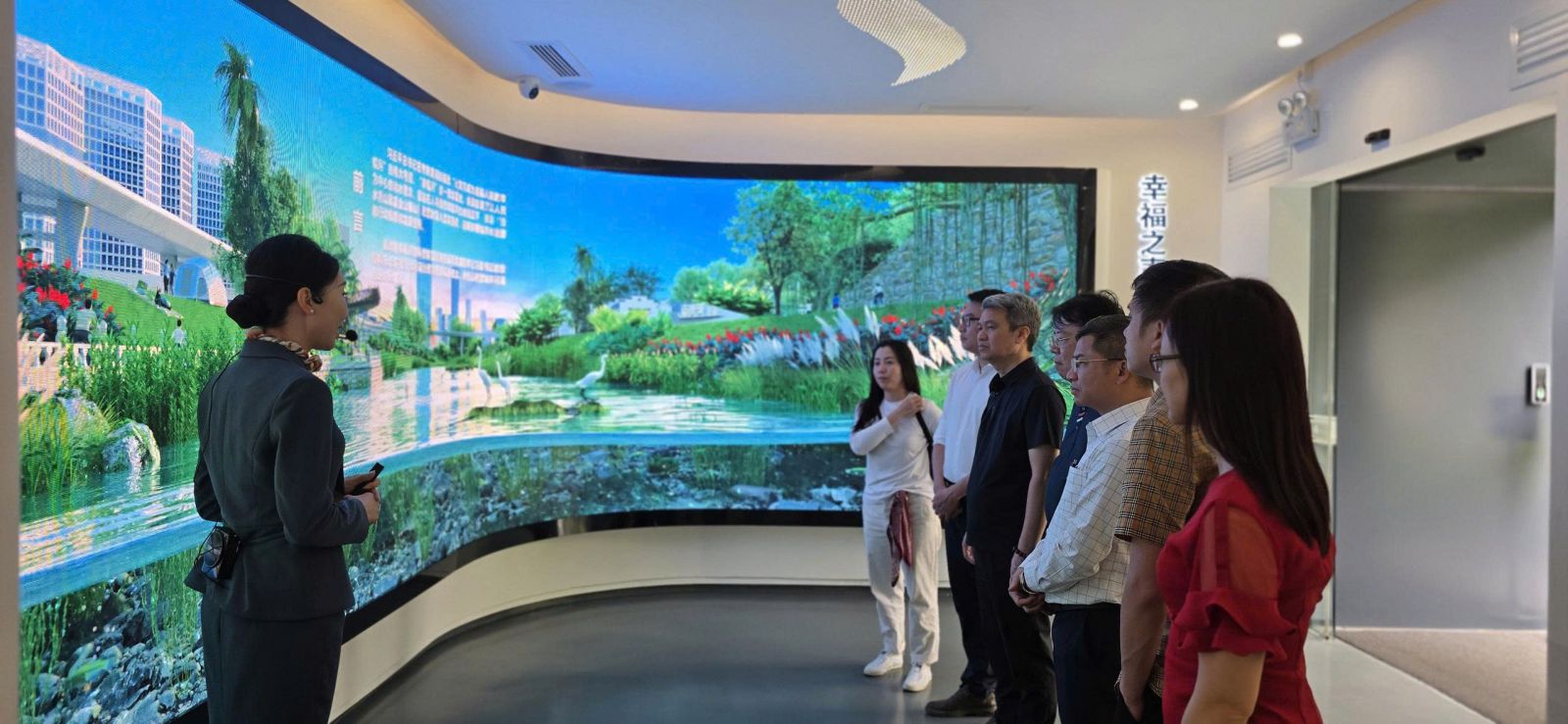 Tham quan mô hình mô phỏng số Công viên Văn hóa và Giáo dục sông Nangang với dòng sông được phục hồi về trạng thái ban đầu sau khi đã bị suy thoái và ô nhiễm nặng nề trong quá trình phát triển kinh tế trong vùng